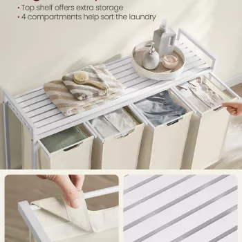 4-Compartment Laundry Hamper with Removable Liners and Shelf - 42.3 Gallons