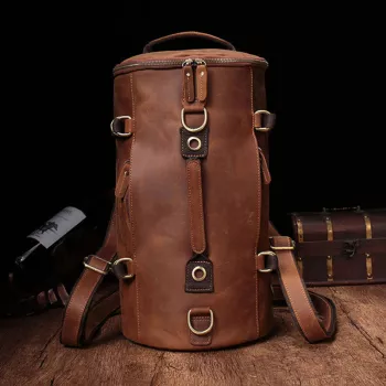 Vintage Leather Bucket Backpack for Men – Stylish Travel Daypack